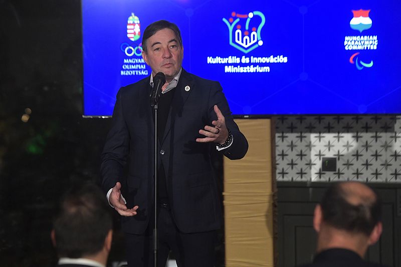 Szabó László, a Magyar Paralimpiai Bizottság (MPB) elnöke beszédet mond a párizsi olimpián és paralimpián eredményesen szerepelt sportolók gálavacsoráján a Millennium Házában 2024. október 16-án. MTI fotó: Soós Lajos