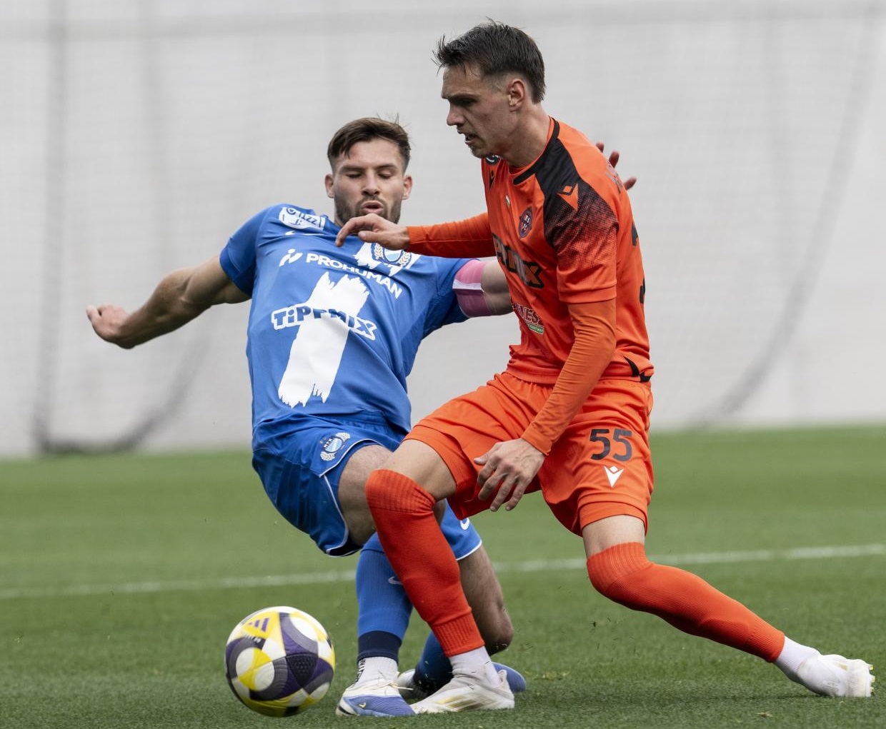 Kata Mihály (b), az MTK és Katona Bálint , a Nyíregyháza játékosa a Fizz Liga 10. fordulójában játszott MTK Budapest – Nyíregyháza Spartacus FC mérkőzésen az Új Hidegkuti Nándor Stadionban 2025. október 18-án. MTI fotó: Szigetváry Zsolt
