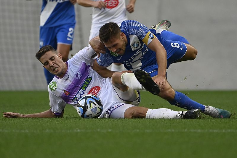 Borítókép: A kecskeméti Vágó Levente Martin (b) és Kata Mihály, az MTK játékosa a labdarúgó OTP Bank Liga 4. fordulójában játszott MTK Budapest – Kecskeméti TE mérkőzésen a budapesti Új Hidegkuti Nándor Stadionban 2023. augusztus 19-én. Az MTK 1:0-ra győzött. MTI fotó: Kovács Tamás