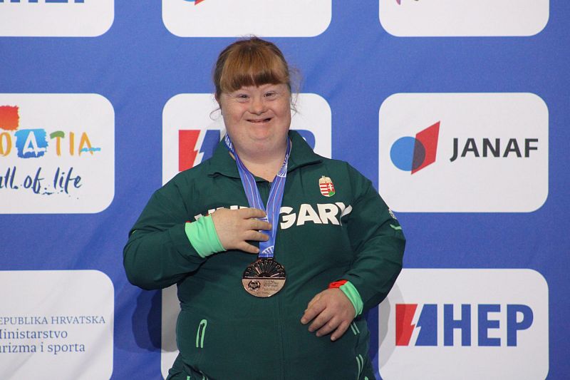 A harmadik magyar érmes, a Down-szindrómások között bronzot szerző Pátkai Andrea most először állhatott fel a dobogóra világversenyen.