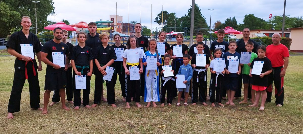 A válogatott edzésen a felnőtt mezőnyből ott edzett a VB-EB érmes Brebovszky Zoltán, Halustyik Cintia, Zahorecz Noel, az utánpótlásból Petrovszki Márton, Laurinyecz Emma,Bak Ágnes Panna. A vasárnapi oktatást meglátogatta Shihan Gregor László VIII.DAN, a Békés Megyei Harcművész Szövetség elnöke, a HNT tagja. A formagyakorlatos élversenyzők készülni tudnak majd az augusztus közepén Csongrádon tartandó központi válogatott edzőtáborban is.